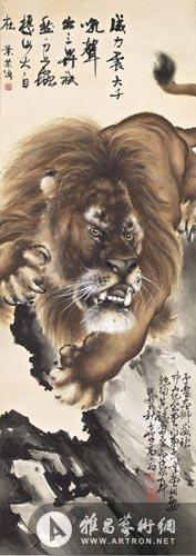 “今天拍卖会上,源自美国著名文学家韩南收藏的张大千泼彩作品《秋山夕照》。以2,420万港元/310万美元成交,荣登全场最高成交拍品。而征集自海外重要收藏的精品亦备受追捧,部份更以高出估价数倍成交,当中北美私人收藏之高奇峰代表作《怒狮》成功拍得1,564万港元,创下画家作品之拍卖纪录;其他重点拍品包括纽约现代艺术博物馆藏张大千之六十年代重要荷花作品《水殿风来》以及来自捷克著名汉学家普实克旧藏之徐悲鸿《迥立向苍苍》均表现出色。”