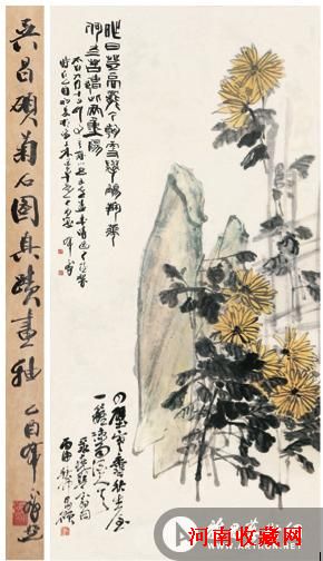 吴昌硕 菊石图 134×65cm(约7.8平尺) 设色纸本 立轴
