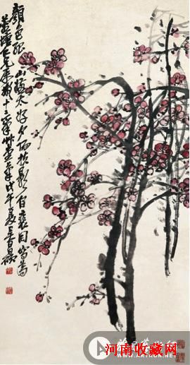 吴昌硕 红梅 98×48cm(约4.2平尺) 设色纸本 立轴