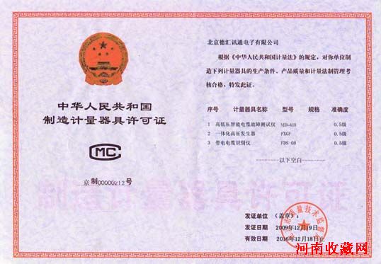 制造计量器具许可证