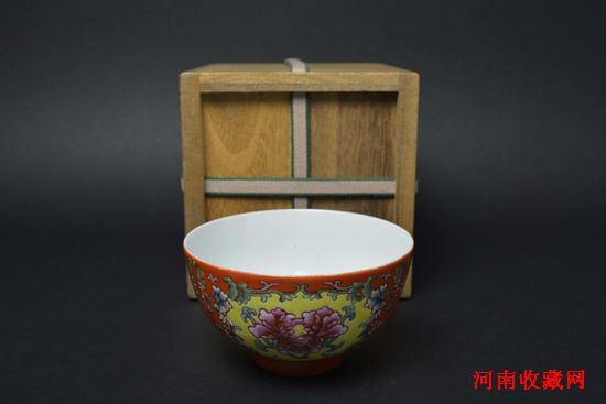 图8【清光绪(官) 珊瑚红开光粉彩花卉碗】