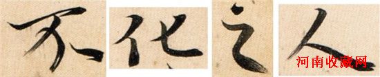 要充份了解“双钩填廓”手法,莫如参考元代陆继善以此法重摹的唐摹本《兰亭序》,陆氏自识云:“因念尝侍先师筠庵姚〔式〕先生、文敏赵〔孟俯〕公,闻双钩填廓之法,遂从兄假而效之”,图10四字取自《云间书帕特展图目》,墨色枯润浓淡相当易辨: