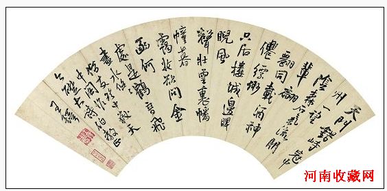 该专场中,“今础”上款的八帧扇面大体在1634年前后陆续写成,均赠送给好友宋之普(1602-1669)。王铎送给他的扇面共有12件见于世,除此八帧外,另有两件藏于故宫博物院。此八帧扇面均为行书自作七言诗,三帧为游中岳嵩山所作;二帧为题诗扇面;三帧为游登太行山所作。每扇一首,书体、笔意、布局规律。据考订,上款人今础宋之普,字则甫,号今础。山东苍县人。自幼聪颖好学,暑寒不辍。明崇祯元年(1628)进士。与父宋鸣梧同殿称臣,深得朝廷器重。崇祯称他“品能铸古,才能裒今”。精于古文辞章,常与王铎品评书画。1644年,清政权建立后,宋之普则携眷南下避难。其时,王铎也流寓于运河、江浙。他们身仕两朝,历经明清鼎革,故而拥有同样的借古怀思之情。通过诗句铭刻内心的嘘叹,抒发内心的荒芜。“秦关不断兵戈气,洛土还问租税催”……这样的诗句只能寄给最知己的同僚才能产生共鸣。