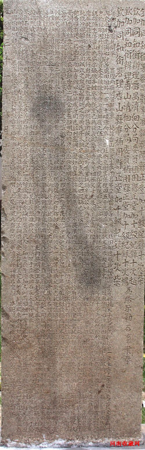 近日,广州市南沙区文物所在区内黄阁镇的文物调查中发现一块清光绪三十一年的石碑,碑长2.6米,宽0.62米,阴文,全文约1600字。碑刻保存较好,仅少数字迹模糊。碑上刻同治、光绪年间番禺、香山两县府对乌洲岗(今广州市南沙区黄阁镇)一处沙田诉讼案处理的“出示”,即今天的政府公告。古碑全文如下(标点符号为笔者所加):
