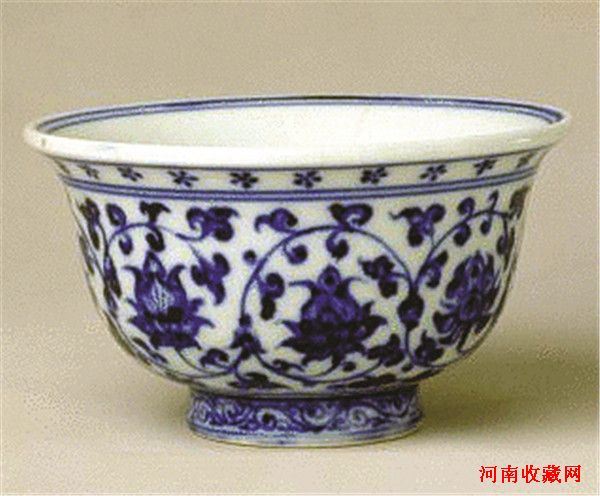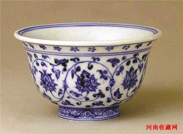 此杯制作精细,形体古朴敦厚。纹饰安排主次分明,杯内纹饰布局简洁,外壁纹饰以柔和的线条组成二方连续缠枝花图案。青花色泽深翠。作品具有很高的艺术价值和研究价值,堪称是明代永乐时期独有的名贵器物。