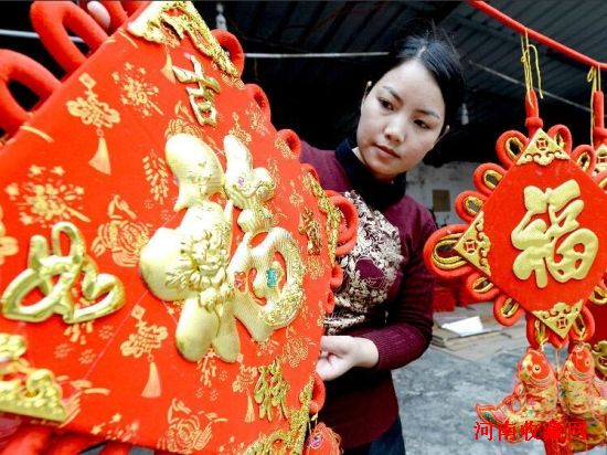 河南省“民间文化艺术之乡”夏邑县火店镇的手工艺品生产历史悠久。近年来,火店镇出台多项举措扶持手工艺品业的发展,民间传统工艺品加工得以发扬光大,形成了旗穗、中国结、排须等生产基地,从业人员达6万人,产品热销海内外。新华社发(苗育才 摄)
