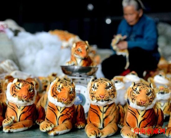 11月11日,河南省商丘市夏邑县火店镇一名村民在制作布老虎