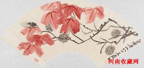 齐白石 《秋蝉红枫》设色纸本 扇面 19.5×54cm
