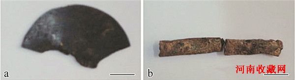 特征:铜镍锌三元合金,为镍黄铜(或镍白铜)。制作工艺为整体热锻加局部冷加工。铜片具有早期铜器的特征。可能采用共生矿的混合矿或多金属共生矿经共熔冶炼得到。铜片为中原龙山时期铜器的新材质,表明中原地区的黄铜技术可能从仰韶早期一直延续到龙山早期。该铜片也是目前我国发现的最早以镍为主要合金元素之一的铜器。