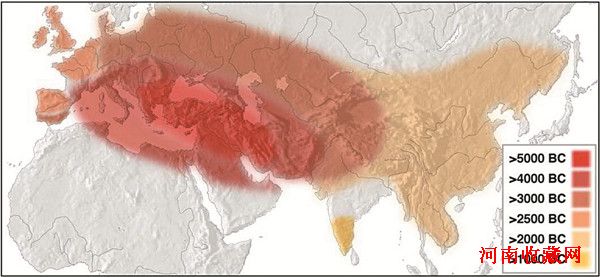 大约在距今4000年左右,东西亚之间已经存在广泛的技术和文化交流。西亚的很多技术和文化在东亚地区都能找到它们的影子,如小麦的栽培,绵羊、马、骆驼、黄牛等家畜的驯化,以及典型西方文化特点的权杖等遗存,都在中国的北方地区有所发现。