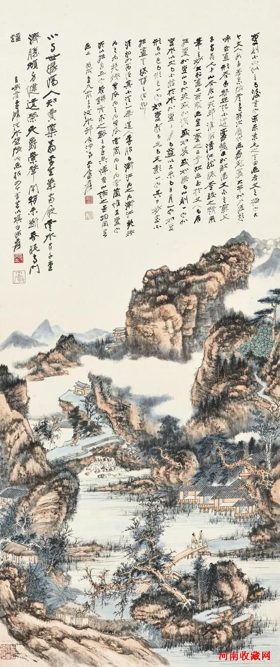 张大千《溪山游屐图》1946年作设色纸本,立轴
