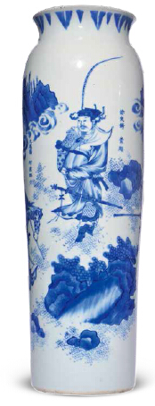 明崇祯 青花水浒传人物故事图筒瓶高: 45 cm