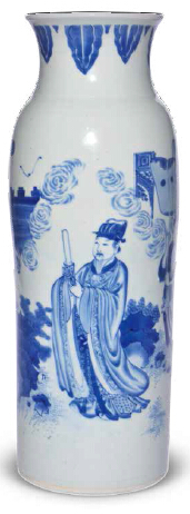 明崇祯 青花访贤图筒瓶高: 44.2 cm