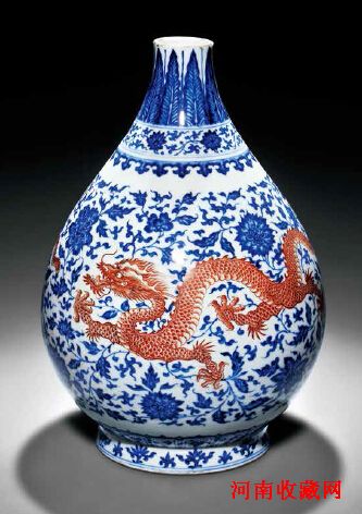 清雍正 青花矾红穿花龙纹玉壶春瓶高: 27.7 cm“大清雍正年制”款