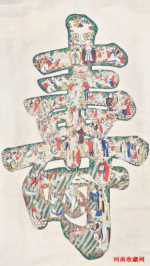 清晚期 彩绘群仙祝寿图寿字立轴258×128 cm