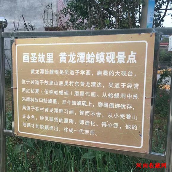 河南收藏网鸿畅消息:画圣吴道子故里位于河南省禹州市城西南鸿畅镇山底吴村。距郑州90公里。面积达7.2平方公里,画圣祠坐南朝北,祠内两壁绘有吴道子的传世名作;门内有碑廊,树有名人书画碑刻;东西厢房,陈列有吴道子珍迹遗物;画圣大殿,正对三峰山的道子墓、饮牛坑、祖师洞和谜语峰。殿后有角门,直通十八连环彩石洞,山下是兰河,乘游艇可观看吴道子垂钓台。是一处自然风光与人文景观相交汇、书画艺术底蕴丰厚的一方圣地。