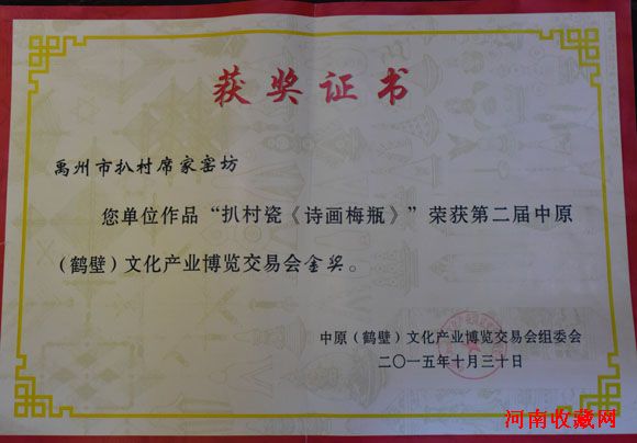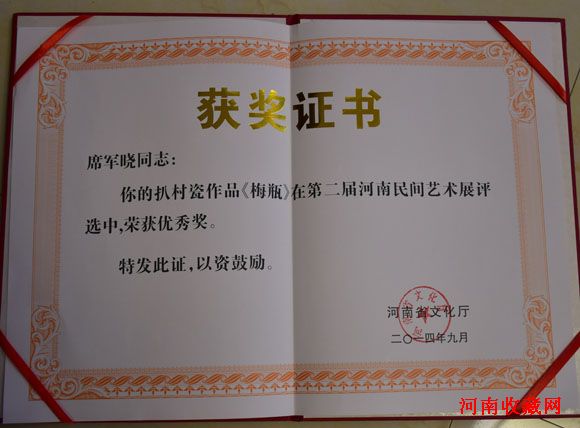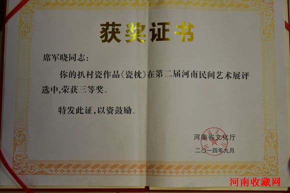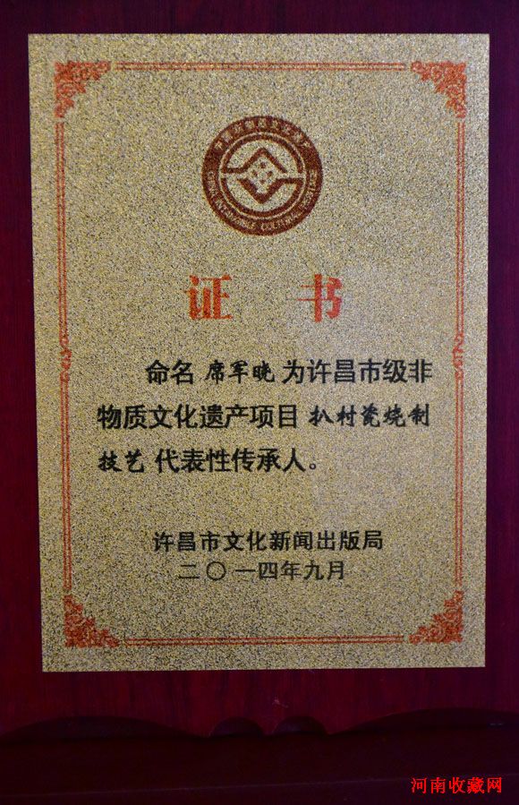 如今,席军晓已恢复生产扒村瓷50多个品种,2014年,他被许昌市人民政府评定为“扒村瓷烧制技艺首批传承人”。对此,他并不满足。“我现在做的扒村瓷可以说是刚入门,与传统的扒村瓷还有不小的差距。只有不断改进工艺技术,进一步提高成品的艺术品位,才能使这个具有千余年历史的古老瓷种早日重现华彩。”席军晓如是说。