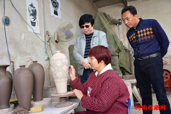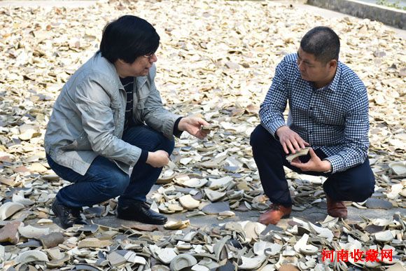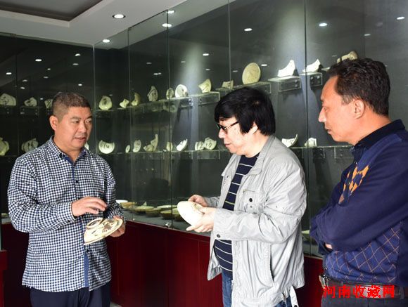席军晓在扒村席家窑坊博物馆向河南收藏网的客人介绍宋代扒村瓷标本