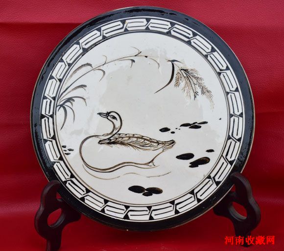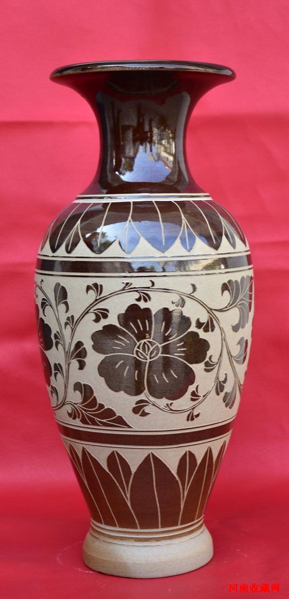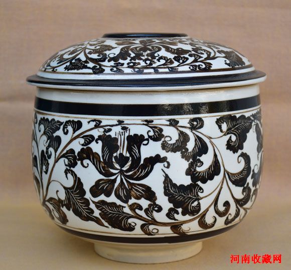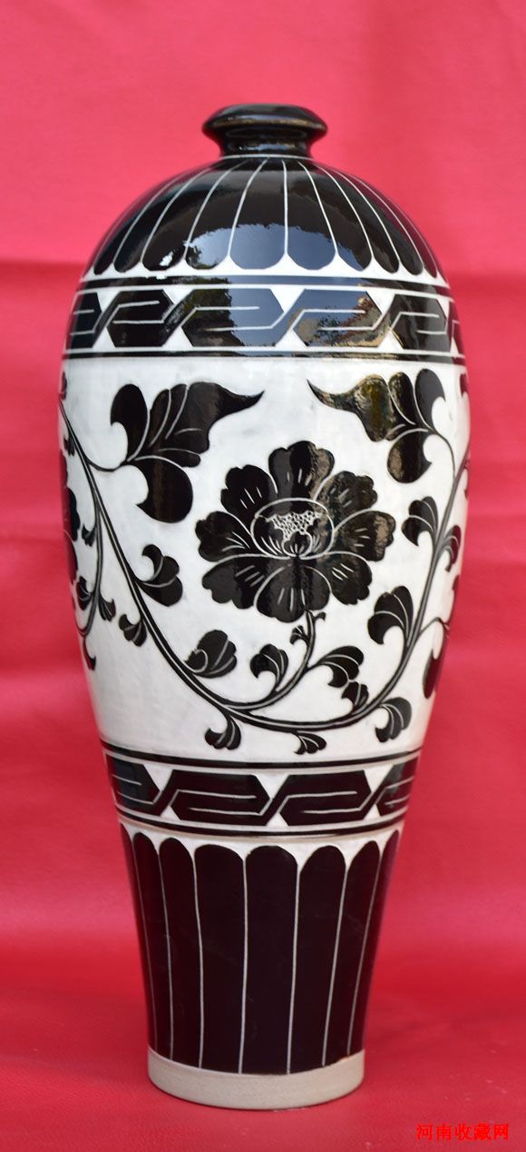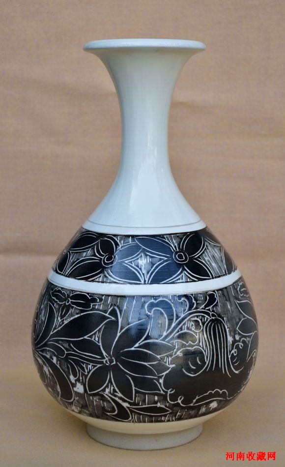 扒村位于禹州市城区西北13公里处。扒村窑遗址在村东南,东起龙母奶奶庙,西至虎头山下,南起花果岗,北至扒村北,东西长约1500米。扒村窑始于唐,止于元,是我国北方有特色的一座民窑,属磁州窑系。其白地釉下黑彩与磁州窑属同一类型,黑彩浓而醇厚,笔调粗放简练。扒村瓷多为白底黑花,胎质坚硬,但略显粗糙;胎有深灰色和米黄色两种,釉面没有光泽,白釉通常泛乳黄色。扒村瓷还有翠青地绘黑花,釉色有黑、白、三彩、加彩等。它的装饰技法主要采用绘画和划花,分为釉下和釉上两种彩绘。其风格比磁州窑更加粗放凝练,黑彩也更加浓厚,故有宋代墨瓷(遗址)之称。中国古瓷学会原会长耿宝昌先生、中国民协主席冯骥才先生誉之为“瓷上水墨”。“白地黑花”可谓是凝结在古瓷上的中国画、烧制在古瓷上的中国书法。