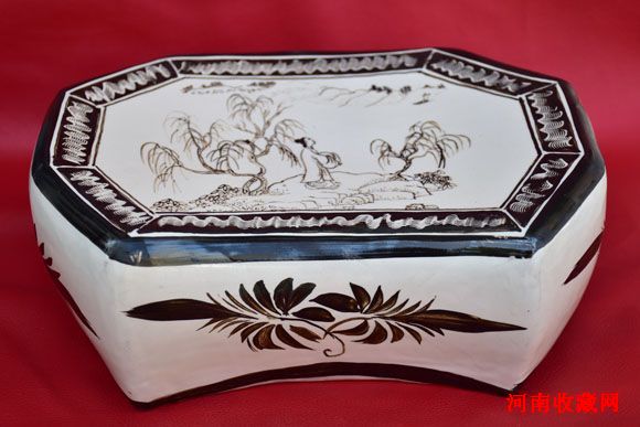 据史料记载,扒村窑创烧于唐代,终止于元代,是我国北方有特色的一座民窑。其主要品种有白地黑花、白釉、黄釉、黑釉和青釉;器型有碗、盘、枕、瓶、罐等。扒村瓷多为白底黑花,胎质坚硬,但略显粗糙;胎有深灰色和米黄色两种,釉面没有光泽,白釉通常泛乳黄色。扒村瓷还有翠青地绘黑花,釉色有黑、白、三彩、加彩等。它的装饰技法主要采用绘画和划花,分为釉下和釉上两种彩绘。2010年,扒村瓷烧制技艺被公布为“许昌市非物质文化遗产”。