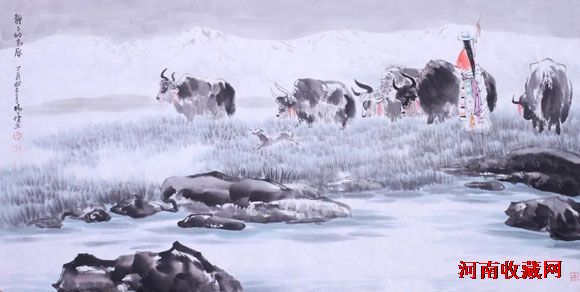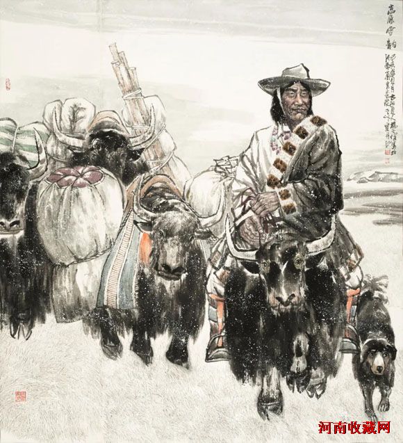 这类作品大多画得深邃结实,有历史的厚重感和现实的感染力,富于视觉冲击的穿透力量和震撼观众心灵的艺术效果。代表性作品有《圣火》、《祈祷》、《高原情》、《珠峰脚下》、《高原秋意浓》、《笃信》等;第三类为古典人物风情,即古代高人逸士和写意仕女。其笔下高士或饮或歌,或奕或吟,或行或舞,或赏月伴花,或倚石捧书,或枕船逐柳,或骑驴郊游,将古贤高逸表现得风流倜傥、古雅多趣。其笔下仕女或倚竹待月,或静坐幽思,或孤芳自赏,或结伴踏青,多写妙龄少女的青春情愫。此外,他的山水画与花鸟画的颇见功力,得静雅生动之旨趣。