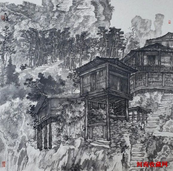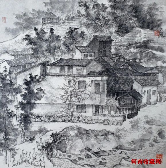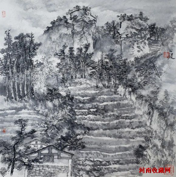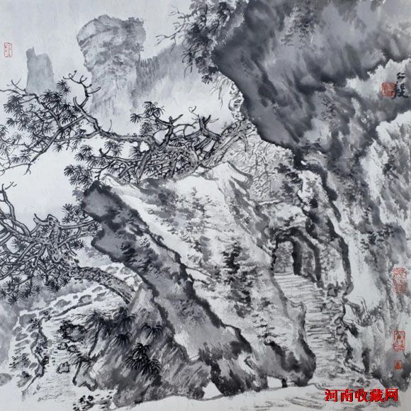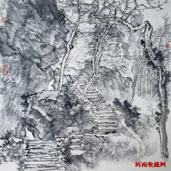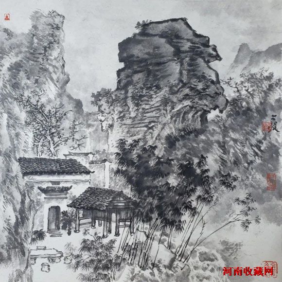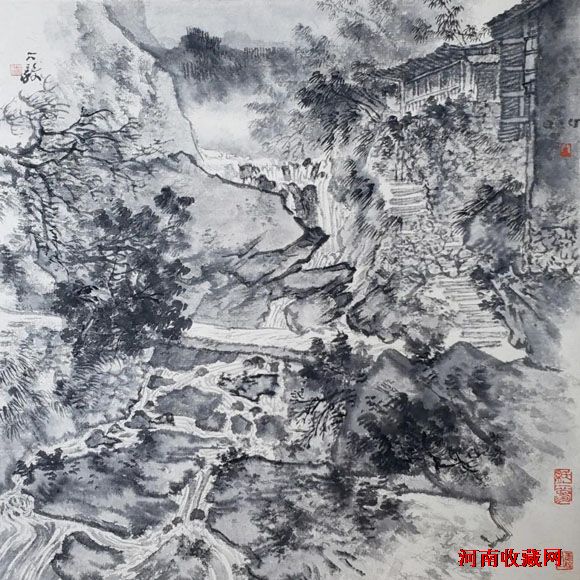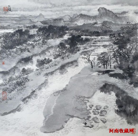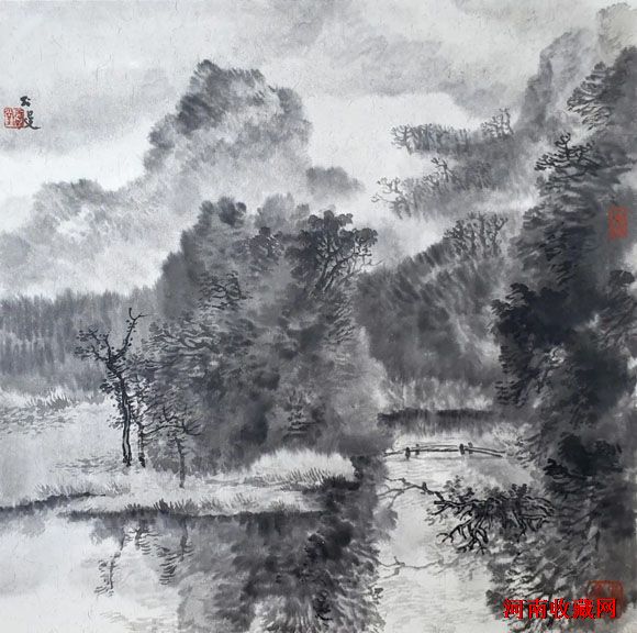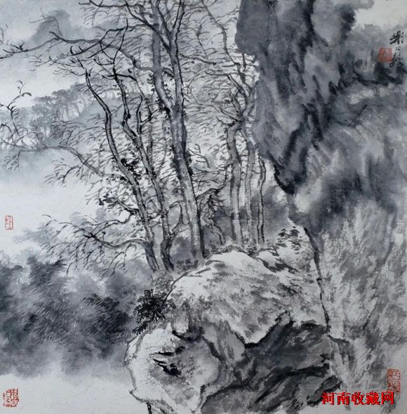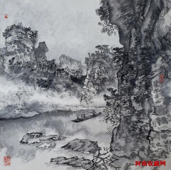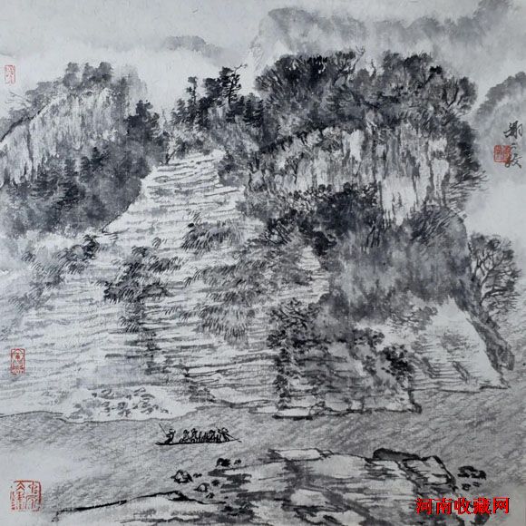 五代、宋、元、明、清、民国山水,95%是水墨。会用水,擅用墨,既不呆板,又不花哨。水墨交融,意趣盎然。