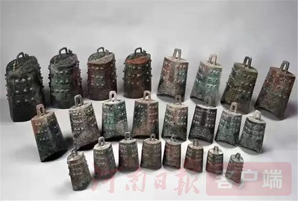 据介绍,新郑郑国祭祀遗址出土的这组编钟属于春秋时期,具有完整的七声音阶结构,音律和谐、音色如歌声般动听。每件钟都有调音锉磨的痕迹,在音质、音准等音乐性能方面较西周编钟有了明显的进步,为研究“郑声”的音乐特征和音乐风格提供了实物资料。