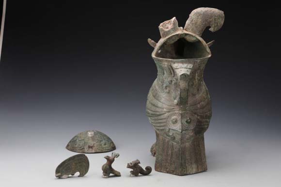 图5 龙耳方壶(春秋) 冠盖 修复前
