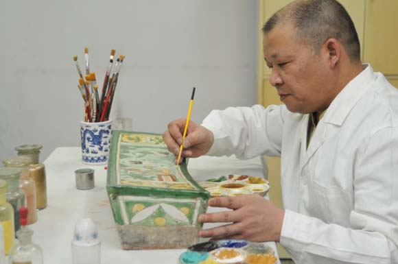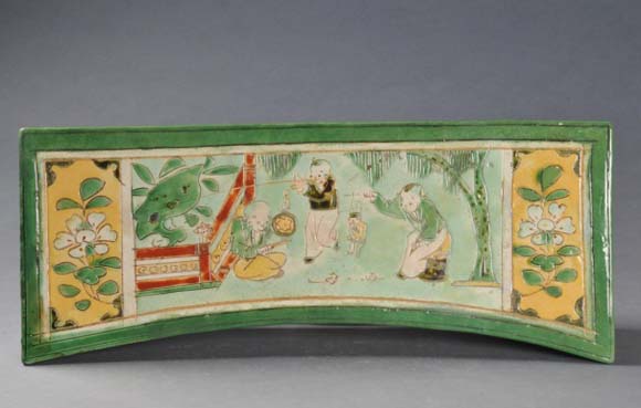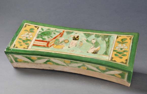 图1 4 三彩童稚木偶戏图枕(宋)修 复中