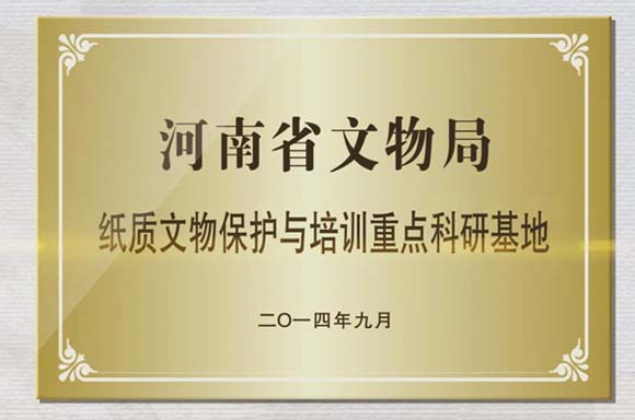 河南省文物局纸质文物保护与培训重点科研基地,是河南省纸质文物保护修复科学研究与专业技术人员培训的专门机构。基地于2014年9月正式成立,设立于河南博物院文物保护研究中心。
