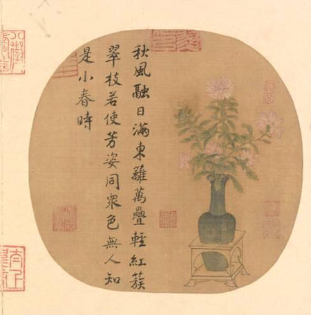此外,宋代文人之间也流行赠花,尤其流行赠梅花等花德高洁的花卉。宋代达官贵人还并养植花卉盆景等,花卉也被加工,制造成香水,制作成囊佩戴。有宋一代,花卉成为宋人物质生活与精神生活的一种重要表达。