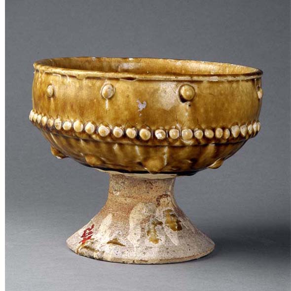 唐黄釉乳丁纹瓷豆,现藏于周口市博物馆。