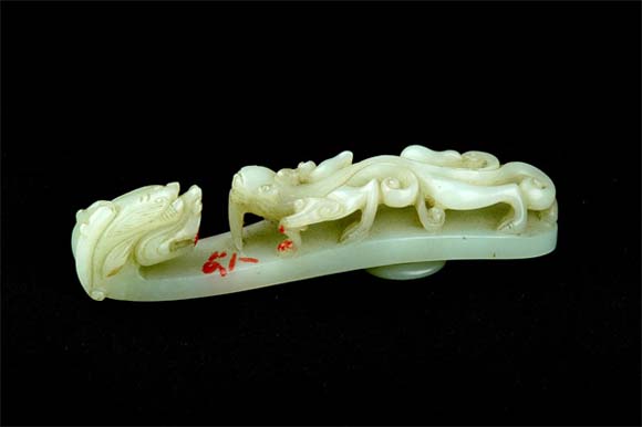 明苍龙教子白玉带钩,现藏于周口市博物馆。