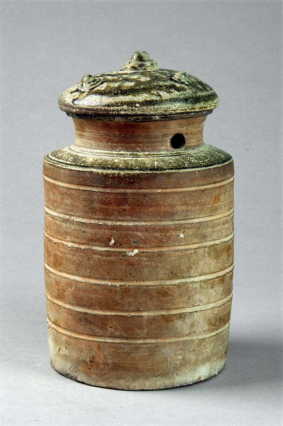 汉 绿釉带盖原始瓷仓