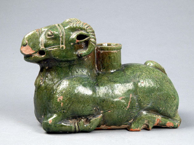汉绿釉卧羊陶尊,现藏于周口市博物馆。