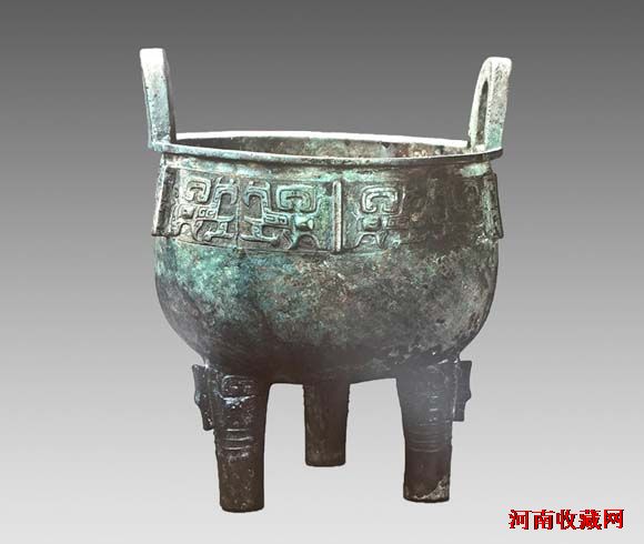 圆口,折沿,方唇,立耳外侈;深腹圜底,下承三柱足,足上端各饰兽面纹, 兽面眉间饰有扉棱,其下饰弦纹,鼎腹近口沿部饰细线云雷纹衬底的兽面纹。整器造型浑厚凝重,纹饰古朴;鼎腹内壁铸有铭文“举父丁”三字,阴文,“父丁”为受祭者称谓, “举”为殷商族徽。此鼎纹饰以商代兽面主题图案为主,形制与殷墟晚期的戍嗣子鼎相近。铸有“举’ 铭族徽的青铜器在全国分布范围甚广,此鼎出士于郑州市区西北郊,对于探讨商代晚期乃至商末周初殷商族氏在本地区的活动、分布具有重要意义。郑州博物馆藏。