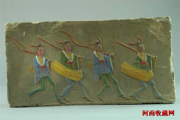 邓县彩色画像砖,题材丰富,有反映当时社会生活的;有宣扬儒家思想的;还有反映还有反映宗教信仰的内容。邓县彩色画像砖因绘工精湛,被学术界看作是保存完好的南朝墨笔彩绘的艺术珍品。