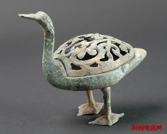 中国使用香料的历史非常悠久,而熏炉是专门用来熏香的器物,早在战国时期中国已经有在室内熏香的习俗,并开始制作熏香的器物。这件鸭形香薰是汉代时期的作品,在当时这件熏炉应当不仅仅是一件生活器具,还是一件精美的工艺品,显示了我们祖先高雅的生活趣味和精湛的铸造工艺。