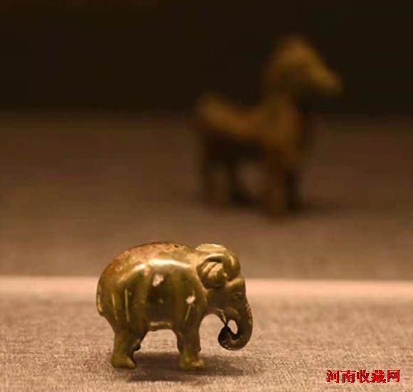 象,善解人意,勤劳能干。聪明灵性的“象”,在中国传统文化中被视为高贵吉祥的象征。因“象”与“祥”字谐音,所以大象被赋于了不少吉祥的寓意,比如说以象驮宝瓶寓意为“太平有象”,以象驮如意或象鼻卷如意为“吉祥如意”等。这件铜象小巧盈握,造型精准,线条流畅自然,神态安详逼真,反映了汉代精湛的青铜铸造工艺水平,它对于研究两汉时期的社会生活及思想意识文化具有一定的价值。
