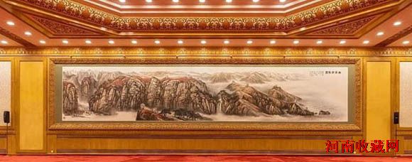 《幽燕金秋图》一直被悬挂在人民大会堂东大厅,多次见证了中央政治局常委集体亮相。几乎每晚都会出现在中央电视台《新闻联播》中,也是央视出镜率最高的一幅山水画作品。