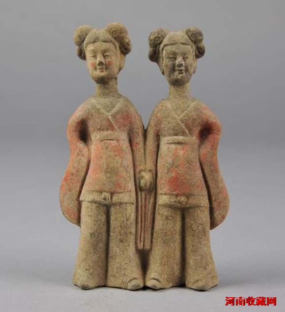 北魏 彩绘陶牵手女俑