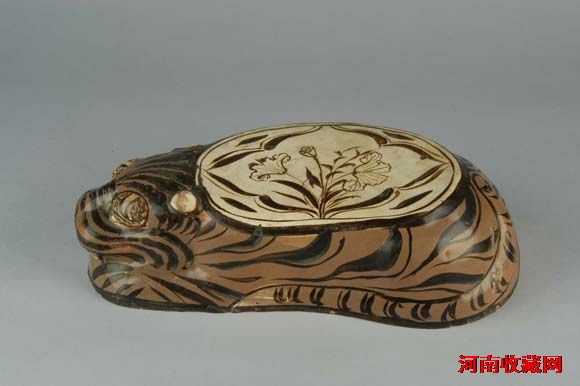 金 卧虎形褐釉瓷枕