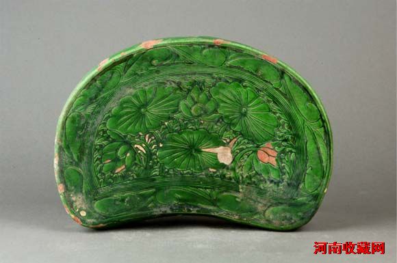 金代 绿釉荷花瓷枕