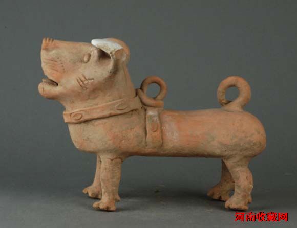 汉代 红陶狗