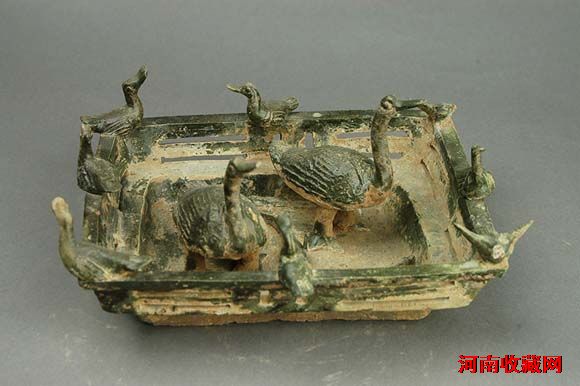 鱼鸭池介绍为汉代器物(公元前202年—220年)长26cm 宽22cm 高12cm于2003年5月在济源市沁北电厂五龙口西窑头M10出土池塘里有鱼有鸭,一副生态养殖的模式。鱼翔浅底、栩栩如生。鱼是古今常用的食品之一,于古人眼里则具有特殊的含义。古人认为,鱼龙同属,能预吉凶,应祥瑞,有的颇似今之鲢鱼,有的像鲤鱼,有的类似黄花鱼,有的则酷似今日十分珍稀的中华鲟鱼。