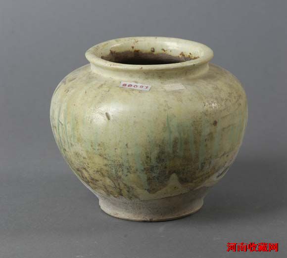唐三彩罐介绍唐三彩罐唐代(618~907年)口径11.4厘米,底径9.7厘米,高14.8厘米 1991年11月文物管理所移交侈口、圆唇、短颈、丰肩鼓腹,平底。器外壁上部施黄、绿、蓝三彩釉,腹下部无釉。器内壁上部无釉露胎,下部及底部皆施黄釉。