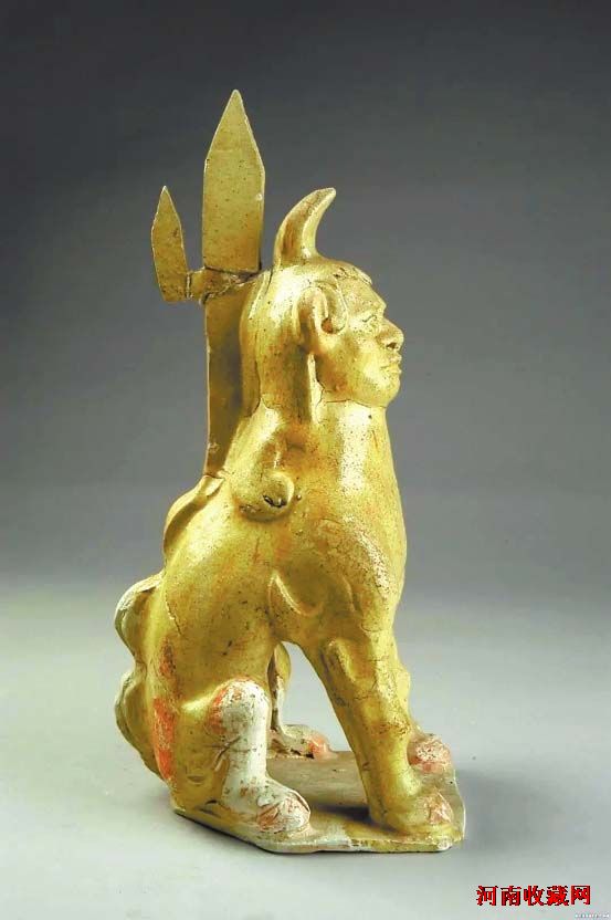 在巩义博物馆,展出的是1990年出土于巩义市鲁庄镇唐代墓葬的黄釉镇墓兽。