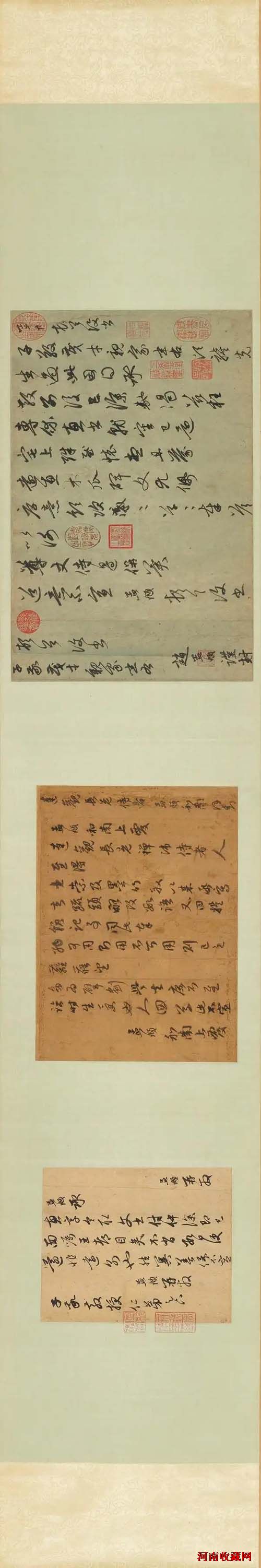 此赵孟頫《行书三札卷》原附明代文元发、张凤翼、王穉登三人题跋(《石渠宝笈初编》有著录),对此卷极尽溢美之词。可惜本卷在1922年以赏赐溥杰的名义出宫以后的流传中,遭遇割裂。经过查阅,此卷的原附明人题跋曾在1999年嘉德古籍场拍出。