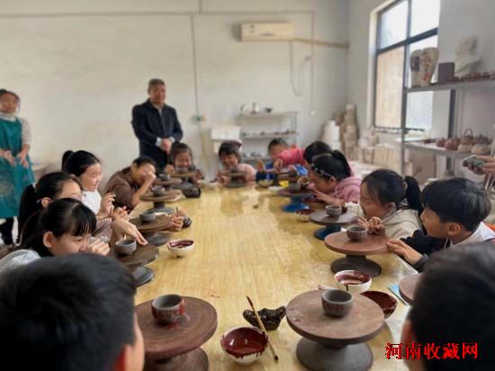 8、2024年11月14日,禹州慧润阶梯学校师生到扒村席家窑坊研学,体验学习扒村瓷制作。