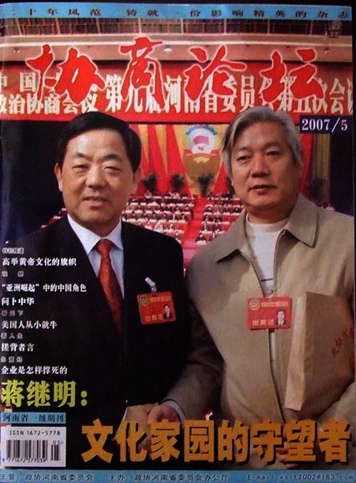 今年1月27日,在省政协九届五次会议医疗卫生.教育.经济三组的联组讨论时,一位委员"加快发展文化产业就要让文化普及.让大众文化流行,让传统文化渗透日常生活"的建言.不仅赢得了众多委员的掌声,也引起了与会的李成玉省长的重视.记者发现,这位发言的委员中是郑州古玩城懂事长蒋继明,他以自己从事文化行业多年的实践,向省领导提出了关于大力发展文化产业的独到见解.